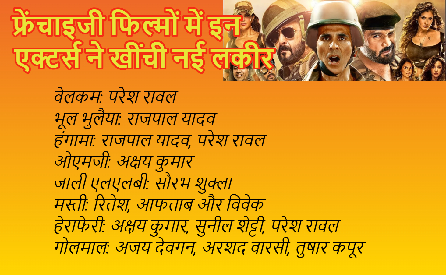 बॉलीवुड पर्दे पर इन दिनों मस्ती, हाउसफुल, गोलमाल, वेलकम सहित कई फ्रेंचाइजी फिल्मों पर काम चल रहा है तो कुछ प्रदर्शन की कतार में हैं। आमतौर पर फ्रेंचाइजी फिल्मों को मूल कहानी और कलाकारों के साथ आगे बढ़ाया जाता है।
