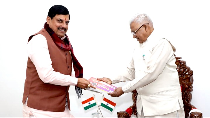 राज्यपाल श्री मंगुभाई पटेल से मुख्यमंत्री डॉ. मोहन यादव ने रविवार की शाम लोक भवन पहुंचकर सौजन्य भेंट की। राज्यपाल श्री पटेल ने मुख्यमंत्री डॉ. यादव को 13 दिसम्बर 2025 को सरकार के दो वर्ष सफलतापूर्वक पूरे होने की बधाई दी। राज्यपाल को मुख्यमंत्री ने मध्यप्रदेश शासन की उपलब्धियों पर केंद्रित पुस्तकें भेंट की और मध्यप्रदेश में बीते दो वर्षों में हुए विकास कार्यों की विस्तृत जानकारी भी दी।
